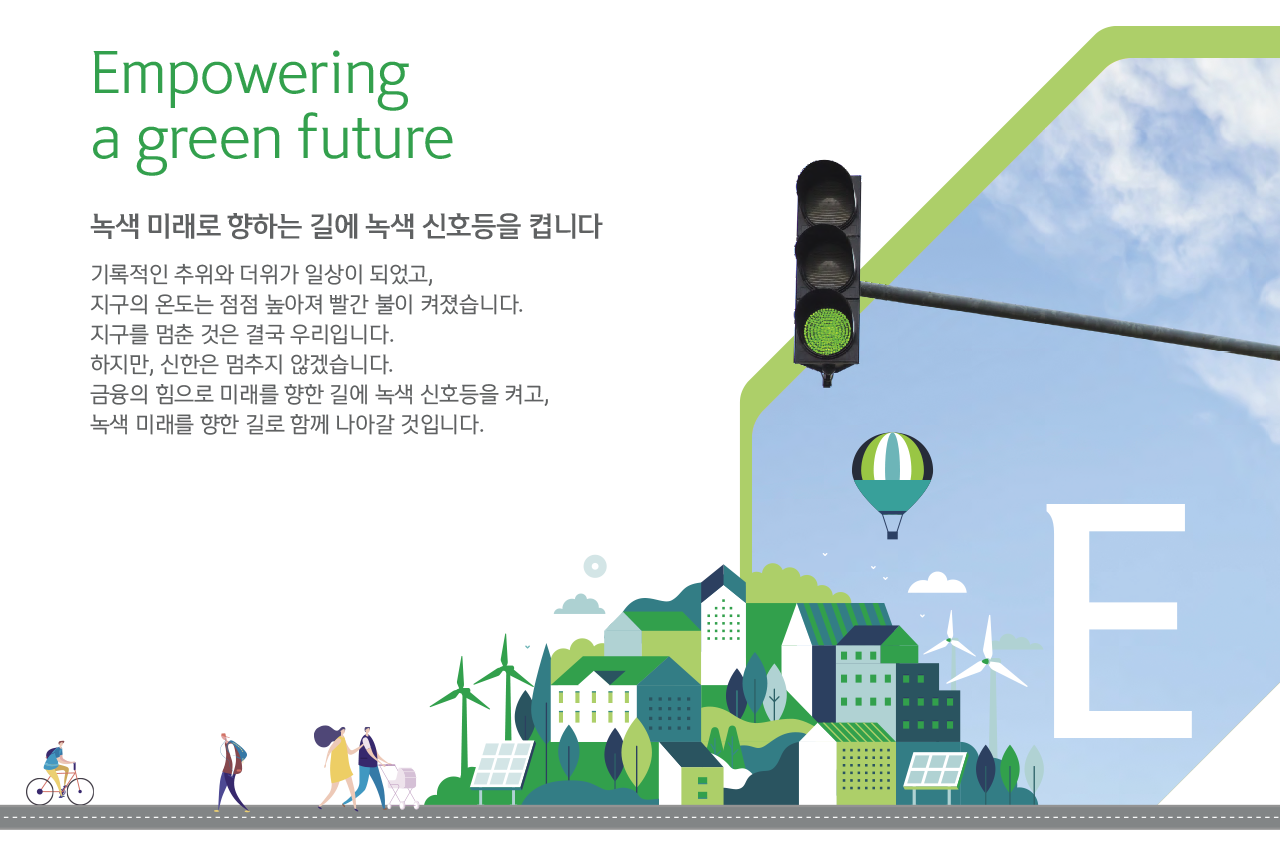 공시에 참여할 것을 제안하여 탄소배출량을 감축합니다. 나아가 친환경 금융 지원을